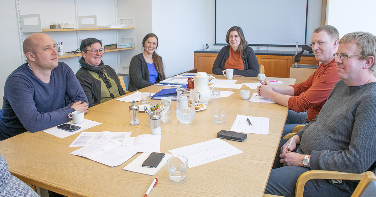 Diskuterer drifta: Deltakarane på kurset Friskare kyr gir glad bonde, samlar seg i grupper for å diskutere mål for eiga drift. Bøndene vert utfordra på ulike tema, blant anna kalv, grovfôrdyrking og lean.