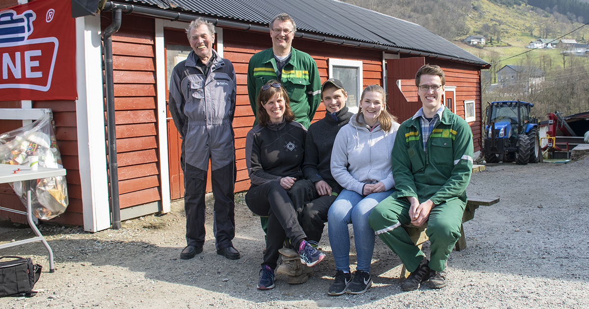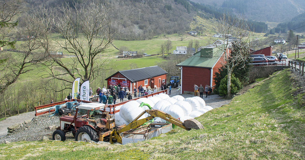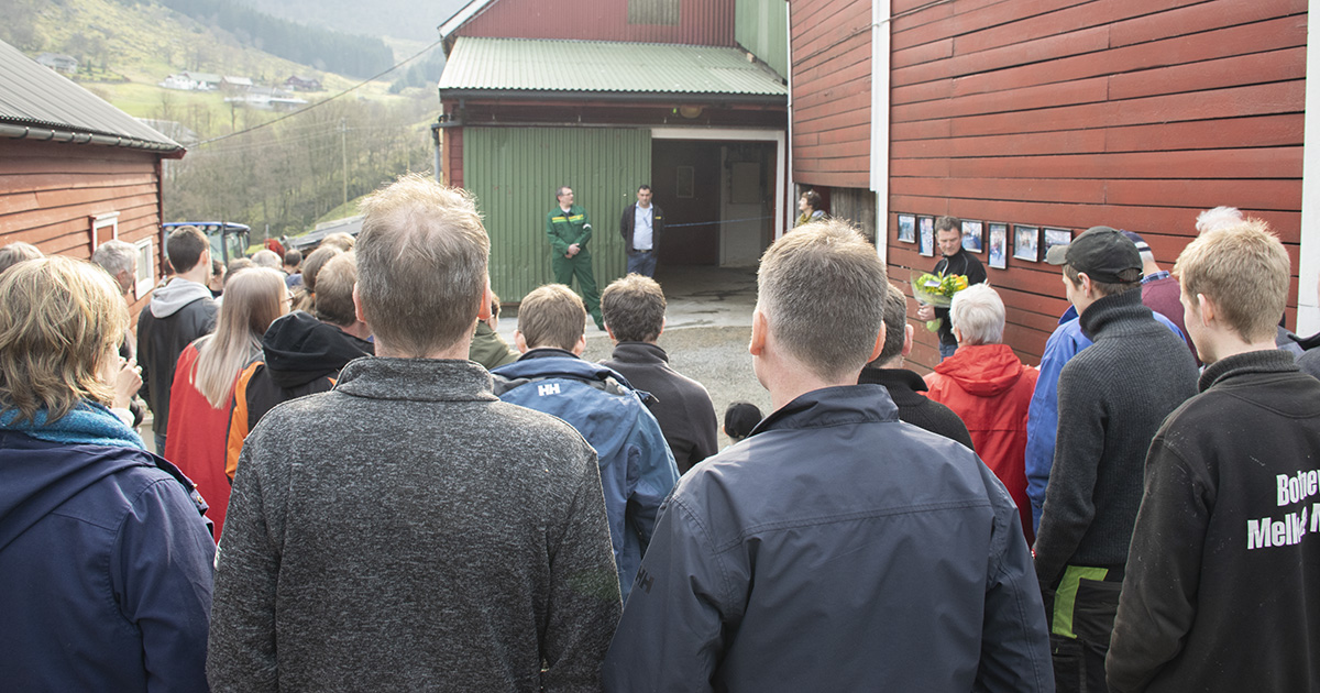 Bonden smiler om kapp med sola denne laurdagen i april. Folk strøymer til frå fjern og nær for å sjå eit av Norges minste lausdriftsfjøs. Helsingar, blomar og gåver strøymer på og familien får mange godord om satsinga.