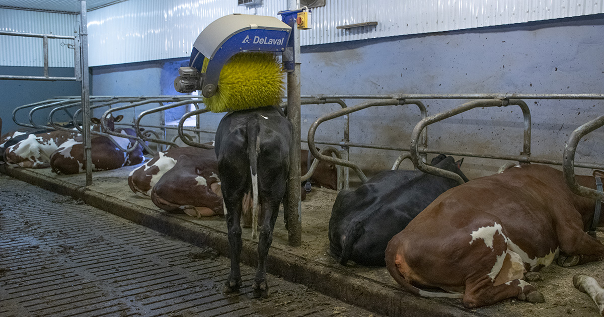 Fjøset er ikkje større enn at bonden hadde avskrive kraftfôrautomaten, noko servicemannen frå Felleskjøpet ikkje ville godta utan å prøve. No står automaten plassert i lengste hjørnet, langs fôrbrettet, utan å stele unødig med plass. Grovfôret kjem frå låven via ei trakt ned på fôrbrettet. Enn så lenge må det fordelast med muskelkraft, men Eivind legg ikkje skjul på at eit fôrband står høgt på ønskelista. Han er heller ikkje framand for ein mjølkerobot – ein gong der framme.