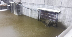 Alle bønders mareritt: Det var dramatisk, men gjekk av i likaste laget då 300 kubikkmeter gjødsel kom på avvege som følgje av at gjødselporten hjå Tarjei Gjesdal sprakk. Foto: Tarjei Gjesdal.