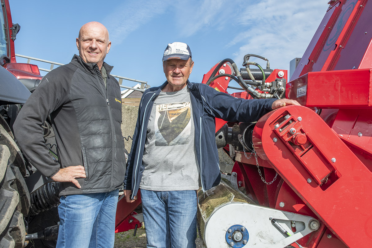 Har trua: Serigstad-konstruktør Helge Njærheim t. v. og grasekspert Ragnvald Gramstad har trua på at den nye vogna vil bli eit attraktivt og arbeidssparande alternativ for særleg mindre- og mellomstore bruk.