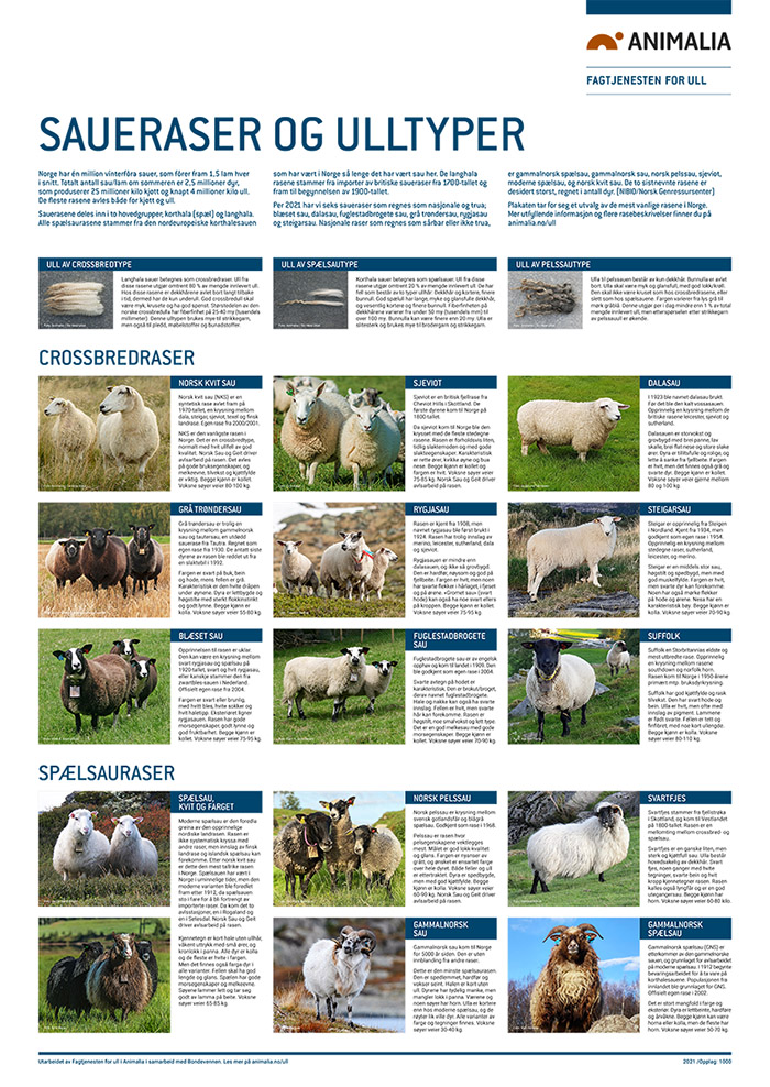 På 90-talet ga Fagtjenesten for ull ut ein plakat som viste sauerasar og ulltypar i Norge. Det var før norsk kvit sau vart godkjent som eigen rase. Plakaten vart svært populær og heng i mange sauefjøs og kontor rundt om i landet. Men no var det dags for ei oppdatering.
