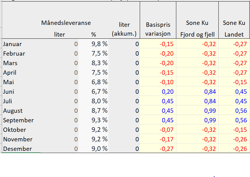 For å stimulere til meir sommarmjølk differensierer Tine mjølkeprisen gjennom året. I år vart differensieringa forsterka med eit ytterlegare tillegg på 20 øre for mjølke levert i 3. kvartal og eit ytterlegare trekk på 17 øre for fjerde kvartal. Differansen mellom høgast og lågast mjølkepris er 1,54 kroner for sone Landet og 2,03 for Fjord og fjell. Samstundes som Tine gir ein betydeleg meirpris for sommarmjølka, gir staten gjennom jordbruksoppgjeret tilskot til dyr som beitar i utmark.