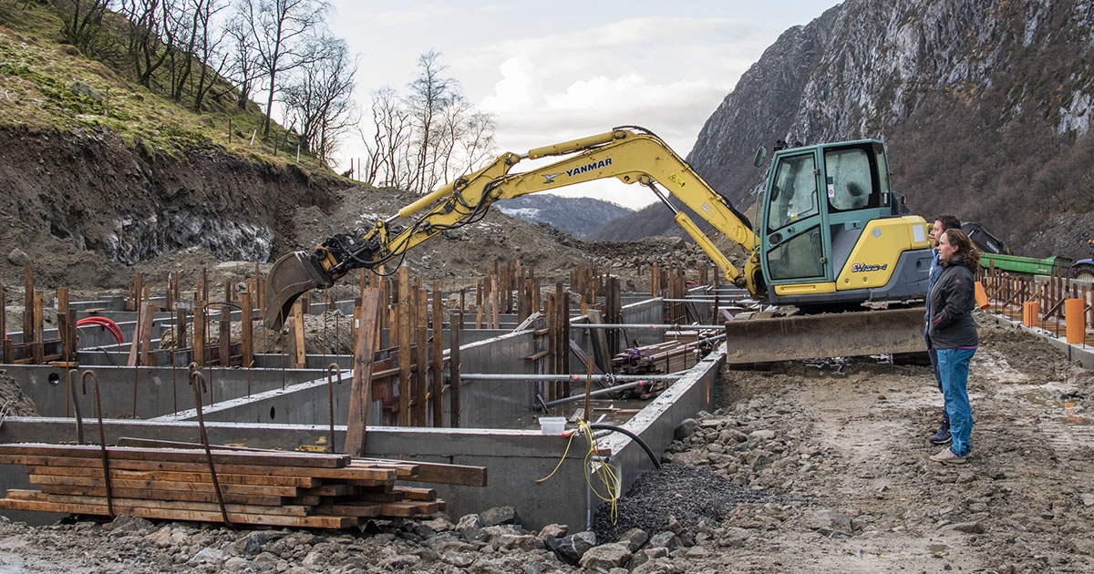 Fjøset blir halvtanna mål stort, og blir bygd der minkhusa stod. 10 000 tonn masse er graven ut. Rivingsarbeidet tok seks månadar.