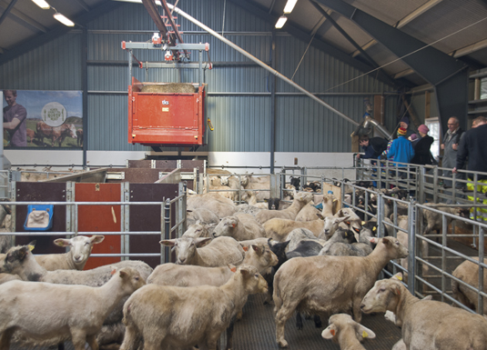 Nærare 250 interesserte sauebønder møtte fram for å studere det nye sauehuset til Olav H. Bringedal og Ragnhild T. Bjørke i Uskedalen. Huset er innreia med fôrhekkar for appetittfôring og kraftfôrautomatar.