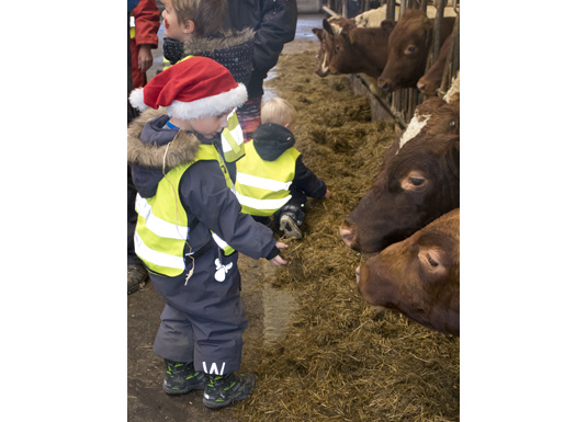 Venene frå barnehagen skal få sjå kyr og oksar, helsa på kalvane og køyra traktor, eta graut og peparkaker.