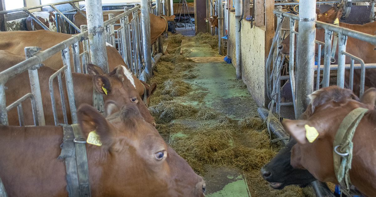 Reint mjølkefjøs: Fjøset har 18 liggebåsar i eit to-rekkesystem med smalt fôrbrett. Nedste del av lausdrifta kan stengast av til sinkyr eller anna bruk om det trengst i periodar.