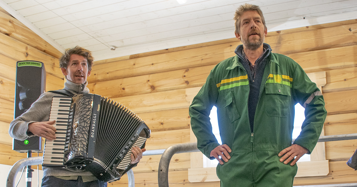 Intimkonsert i fjøset: Med hjelp av yngstebror Odd, fekk publikum med seg ein spesiell konsert frå kubåsen – truleg for første og siste gong.
