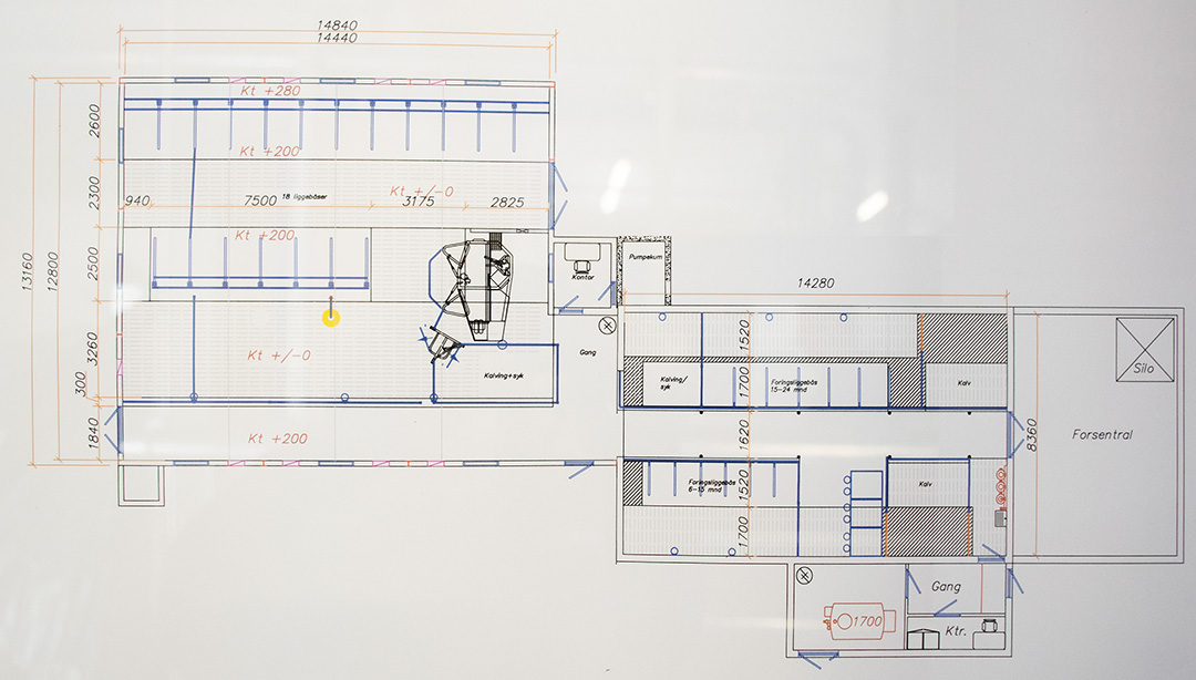 Etter ein runde med fjøsteikningar til 30 kyr, snudde dei på bestillinga. Størrelsen på bygget måtte henge saman med ressurstilgangen. Spørsmålet var kor lite han kunne bygge for å få driftsplanen til å gå i pluss.