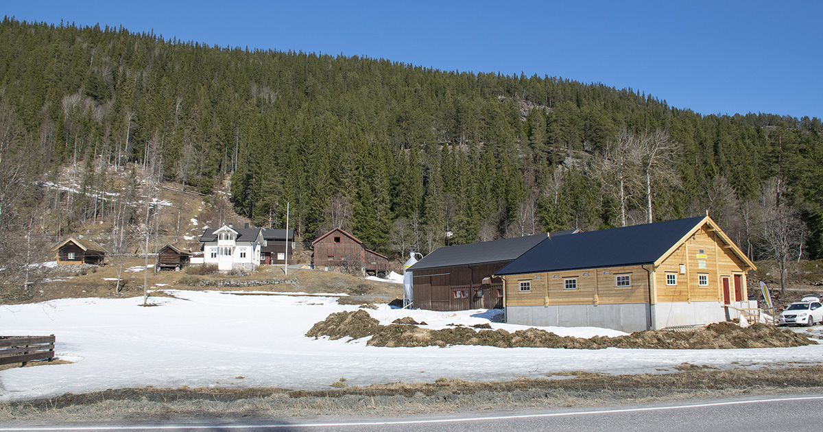 Langs E134 i Vinje i Telemark står eit praktbygg i lafta tømmer. Fjøset huser 18 mjølkekyr og bringer arven på garden Plassen vidare til komande generasjonar.