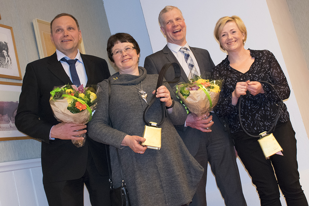 Som æresgjester ved hovedbordet under årsmøtemiddagen, satt det åtte ekstra spente bønder. De var invitert til Store Ree på Hamar, for å ta imot beviset på at de har avla fram og levert oksar av beste klasse.