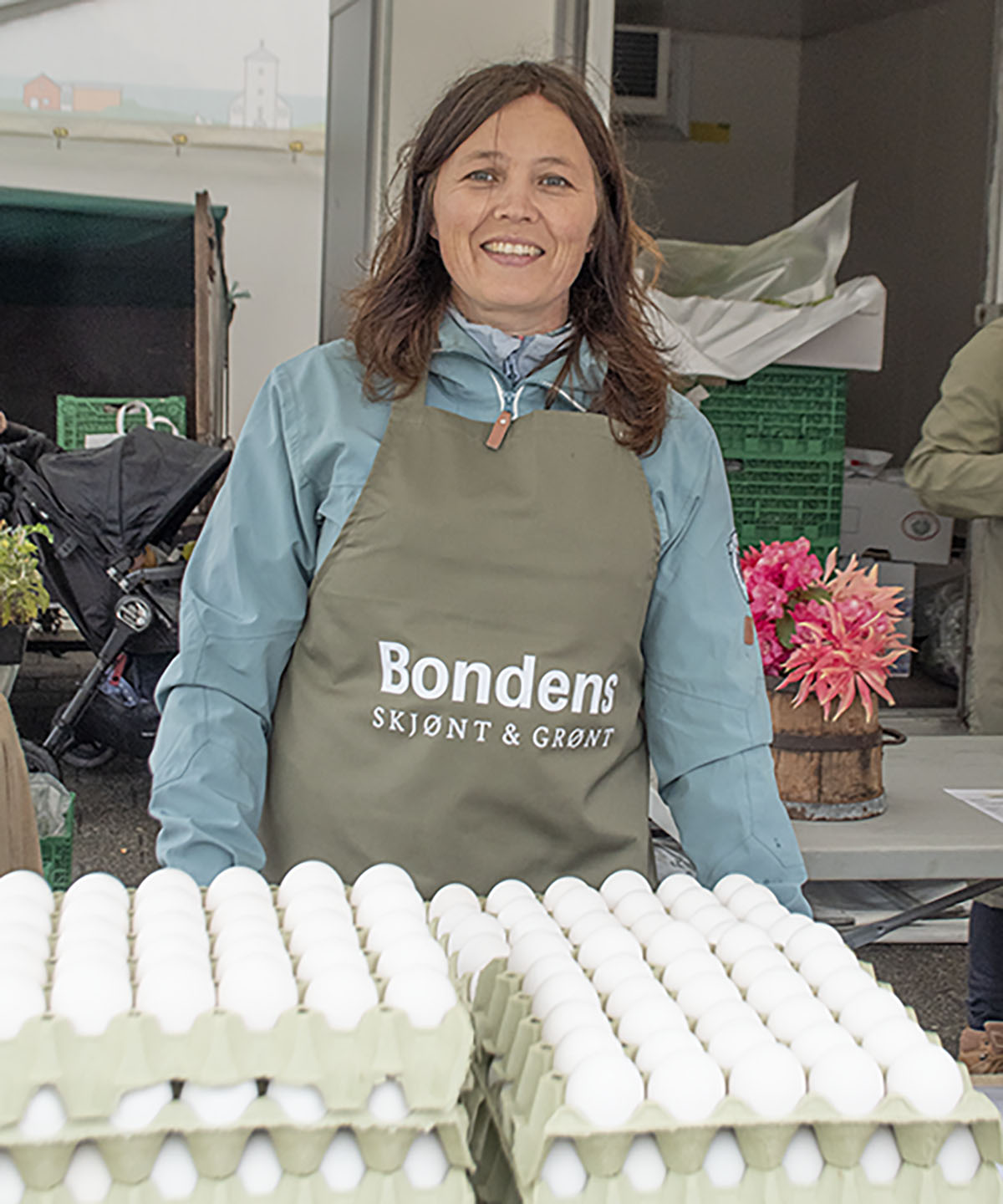 Må ha egg også: Torborg Vistvik har lenge hatt sjølvbetent eggutsal på garden. – Dette er veldig spanande. Og så må det jo vere litt egg blant alle grønsakene også, seier ho.