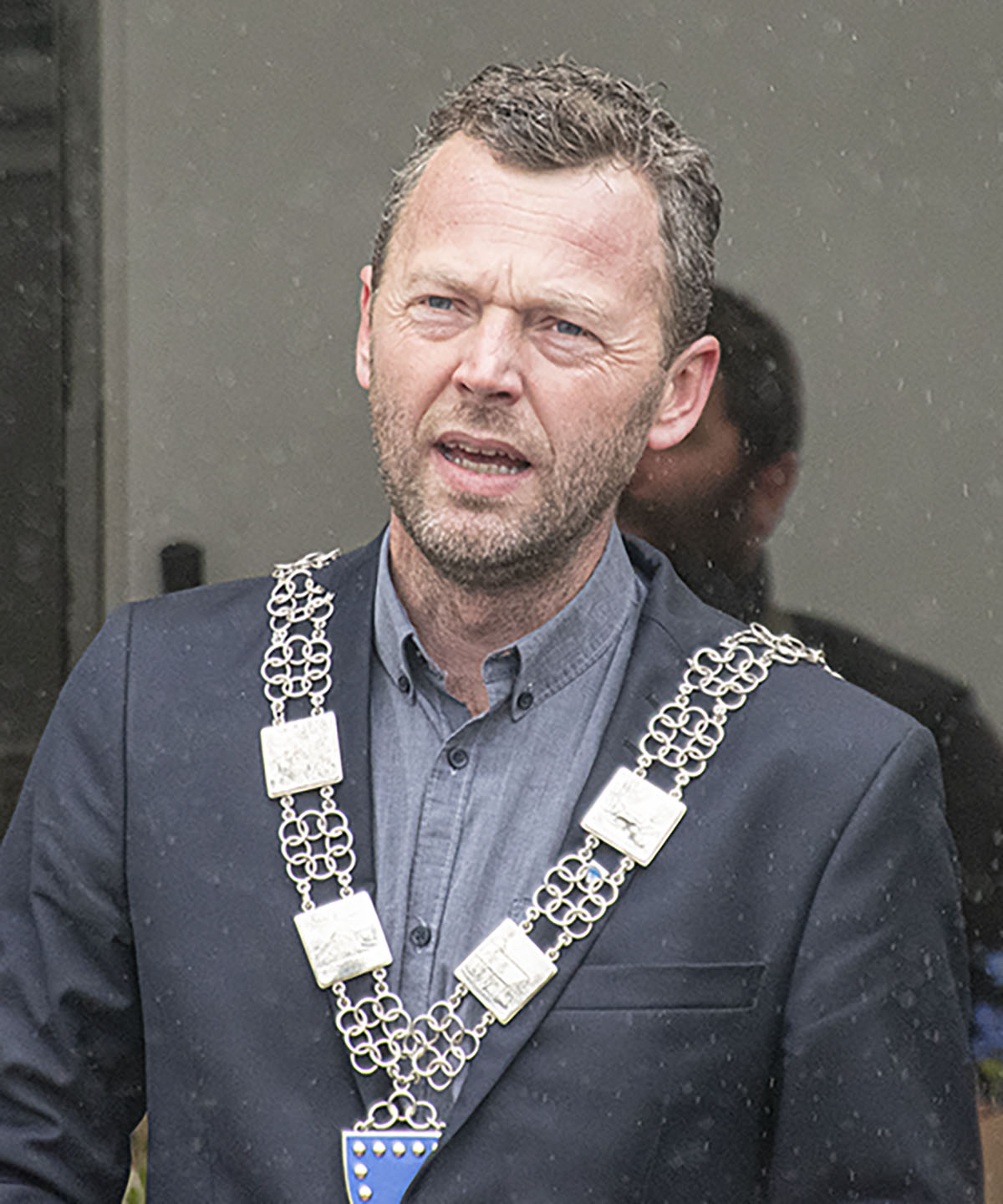 Ordførar Jarle Bø (Sp) var tydeleg stolt på opninga av torghandelen.