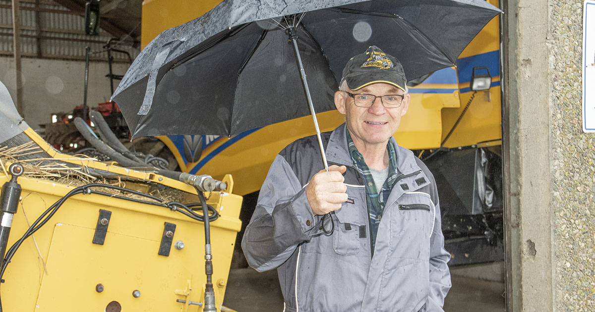 Det same håpet om lagleg vêr til resten av skurden har veteranen Njål Stokka frå Nærbø. På garden, som sonen, Terje Stokka, driv i dag, har dei dyrka korn i «alle» år. Njål er maskininteressert og tresker også for bønder rundt om i distriktet.