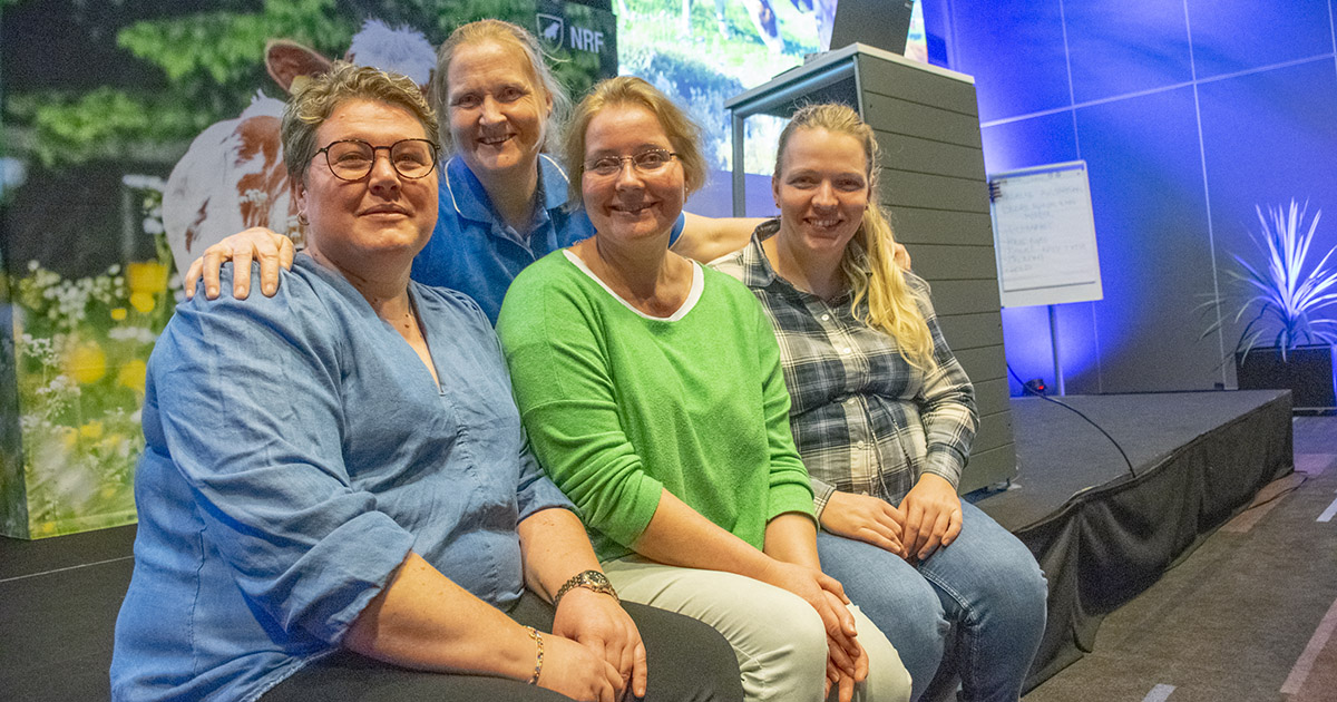 Fruktbart samarbeid: Marikken Røstholt (f.v.), Vibeke Kvalevåg og Ragnhild Mangelrød er alle under avlsrådgivar Gro Knutsen sine vengjer.
