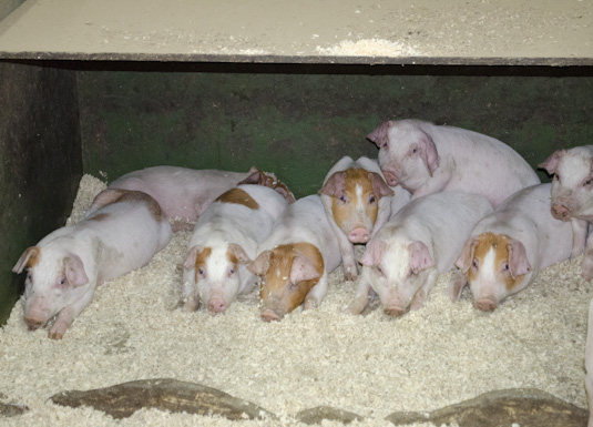 Rein og tørr liggeplass gir rein og triveleg smågris. Kjetil erfarer at mykje spøne reduserer tilfeller av halebiting. – Smågrisen èt litt av spøna, noko som ser ut til å vera med og stabilisera magane, kommenterer smågrisprodusenten.