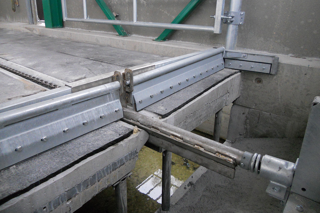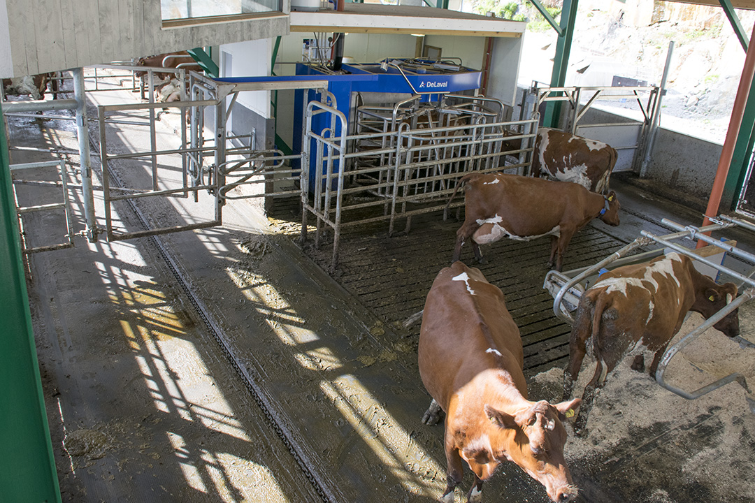Fjøset har fast golv med gummidekke og fall inn mot ei dreneringsrenne i midten. Framfor roboten er det spalter med eit lite gjødsellager. Gjødsla går i røyr til tverrkummen i enden av gangarealet, og flyt vidare i røyr ned til gjødselkummen.