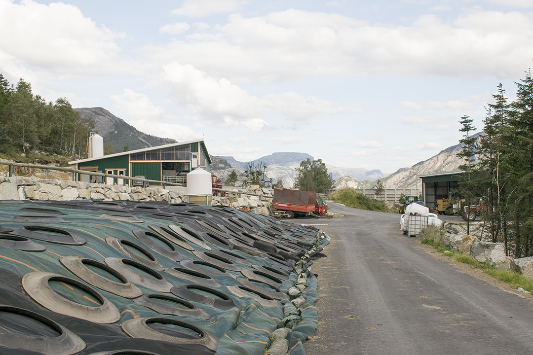 Dyrka jord har dei for lite av, men dei har mykje uproduktivt areal. Dei fann ei passande skråning, med mykje fjell og kratt. Skråninga hadde to passande hyller. På ei av hyllene ligg fjøset, på den andre har dei plassert gjødselkummen.
