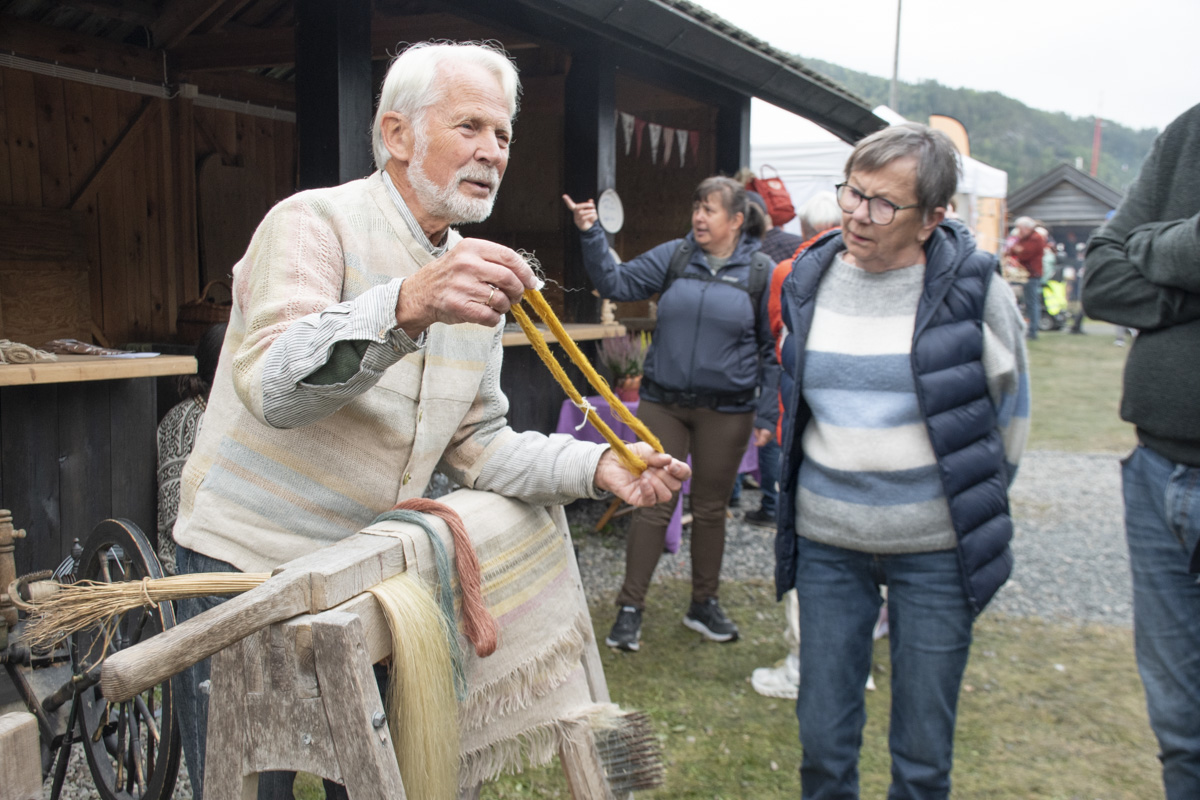 Mellom trådsløyd, finskore trefigurar og tradisjonsostar, står Sveinung Danielsen og skakar og heklar lin. Entusiasmen hans trekk til seg folk som får høyre og sjå korleis han forvandlar strå av lin til den finaste lintråd.