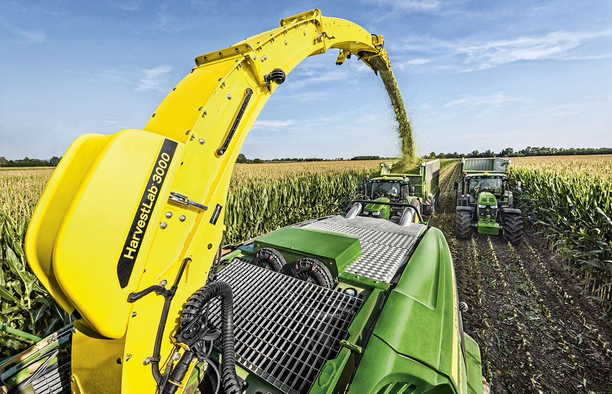 Labben på jordet: Ein John Deere finsnittar utstyrt med HarvestLab 3000 under hausting av ein maisåker. Foto: John Deere.