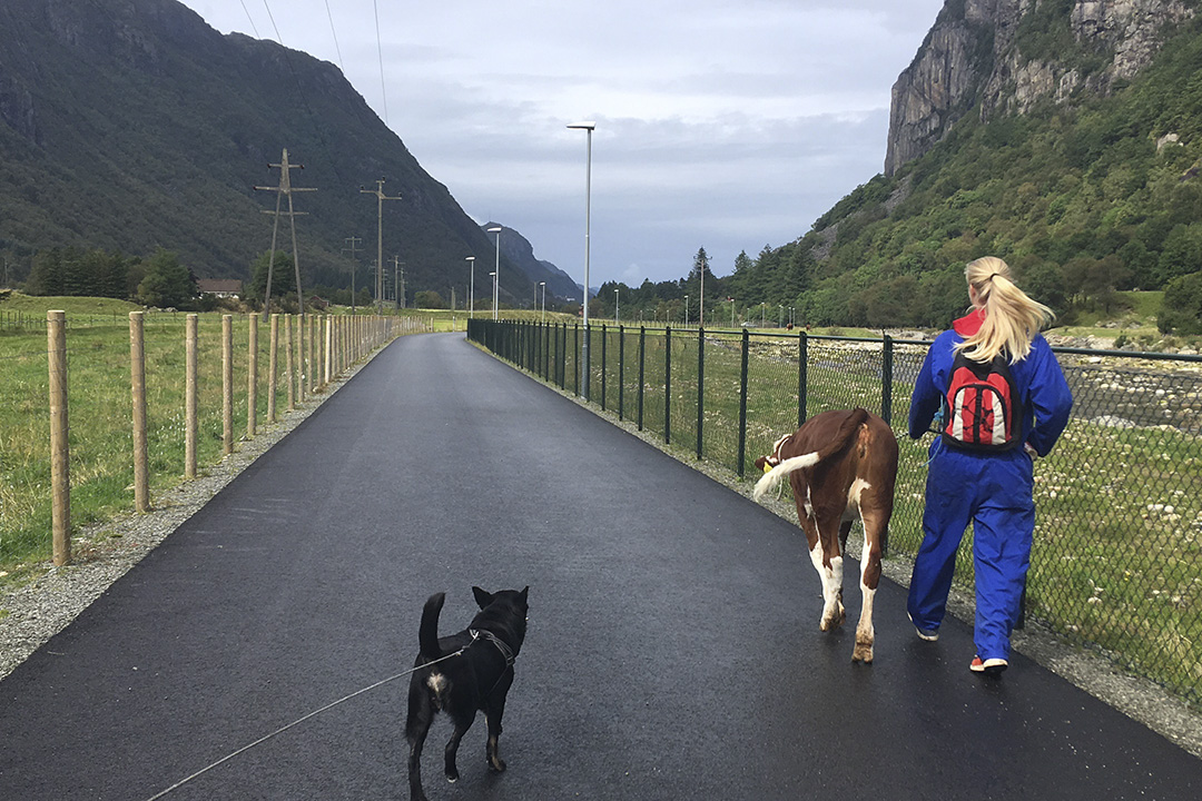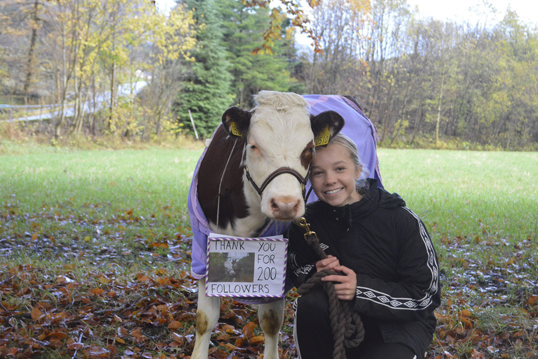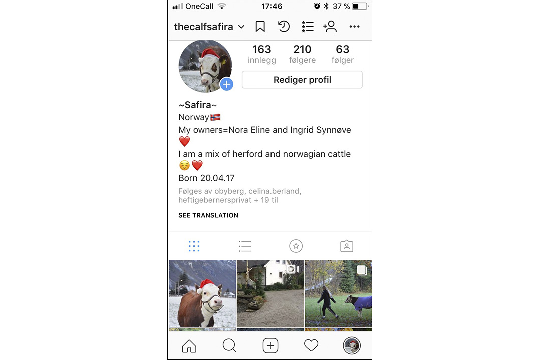 I går var eg ute i snøen med Saffen. Eg festa tau på henne slik at ho kunne dra meg på ski. Ho var kjempeflink. Saffen har sin eigen instagramkonto, #thecalfsafira. Den laga me to dagar etter at ho vart fødd. Der har ho passert 200 følgjarar. Så lik og del, viss du vil.