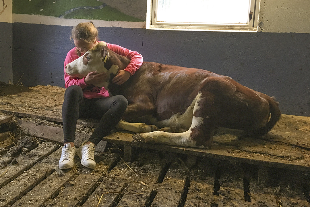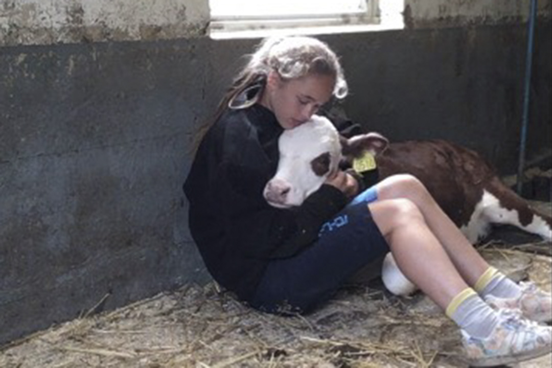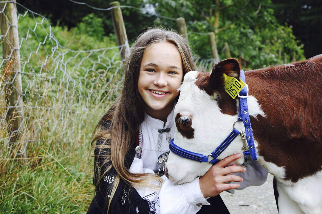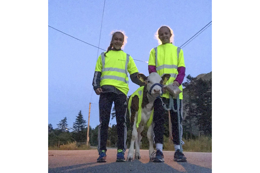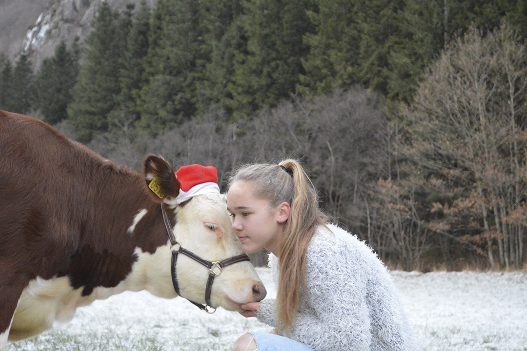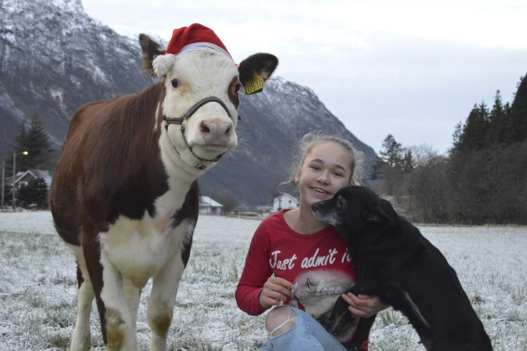 Hei, eg heiter Ingrid Synnøve Nødland. Veninna mi er Nora Eline Berner. Me eig kalven Safira, som me kallar Saffen. Saffen er forresten ingen kalv lenger, men ei kvige som vart fødd 20. april i år. Mora er ei NRF-ku og faren er av rasen hereford. Me bur på ein gard på Nødland i Gjesdal i Rogaland.