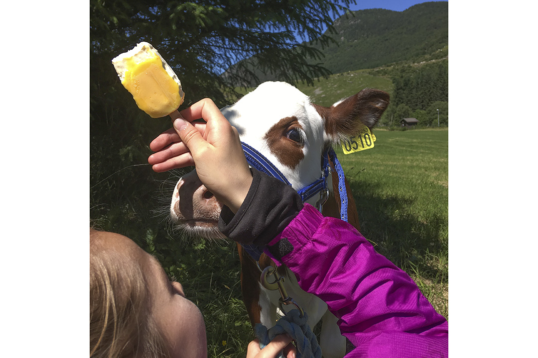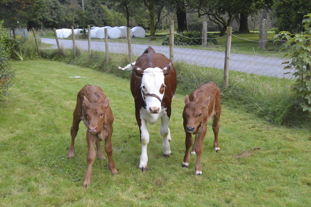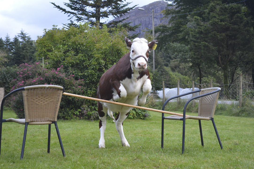 Då Saffen vart fødd, bestemde me oss for å trene ho opp og lære ho litt triks. Ho får godbitar og mjølk som premie. Eg bruker ein klikkert, slik som dei trener hundar med, for å trene Saffen. På kalvemønstringa i Gjesdal i sommar, fekk Saffen premie for finaste kalv og den best dresserte kalven under mønstringa. Ho har lært seg å hoppe hinder, og kan hoppe femti centimeter høge hinder. I sommar hoppa ho over gjerdet og sprang til fjøsdøra for å vente på oss.