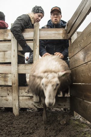 Natta fell på og det blir ikkje mykje svevn på Nortura-gjestane i dei kalde lavvoane. Like fullt, i femtida blir dei vekka – det er tid for skiljing. Heiefolket og familiane deira er alt på plass ved gardane, som snart er fulle av dei fire tusen dyra som kom ned kvelden før. I gjørma kokar det av småstressa sau, hojande sauebønder, nevenyttige ungar – og ein etter kvart svært så skilje-kyndig gjeng med Nortura-gjester. Fine negler knekk og fingrane svulmar etter gripetak i stri ull, men der, etter berre to forsøk, kjem kokken Gundersen førande på ein sau med berre eit lett tak under mulen. Ganske stolt.