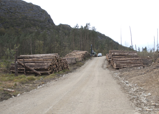 – Me starta opp 15. februar i år , fortel Kjell Ivar. Då leigde han inn skogsentreprenør Lloyd Vaule for å hogge ut vegtrasèen. Vegen er bygd av Glenn Nodland. Kjell Ivar deltok med køyring av dumper og anna utstyr.