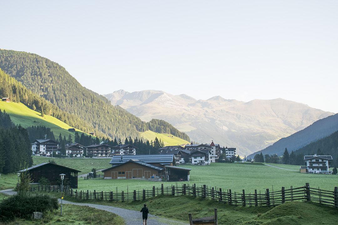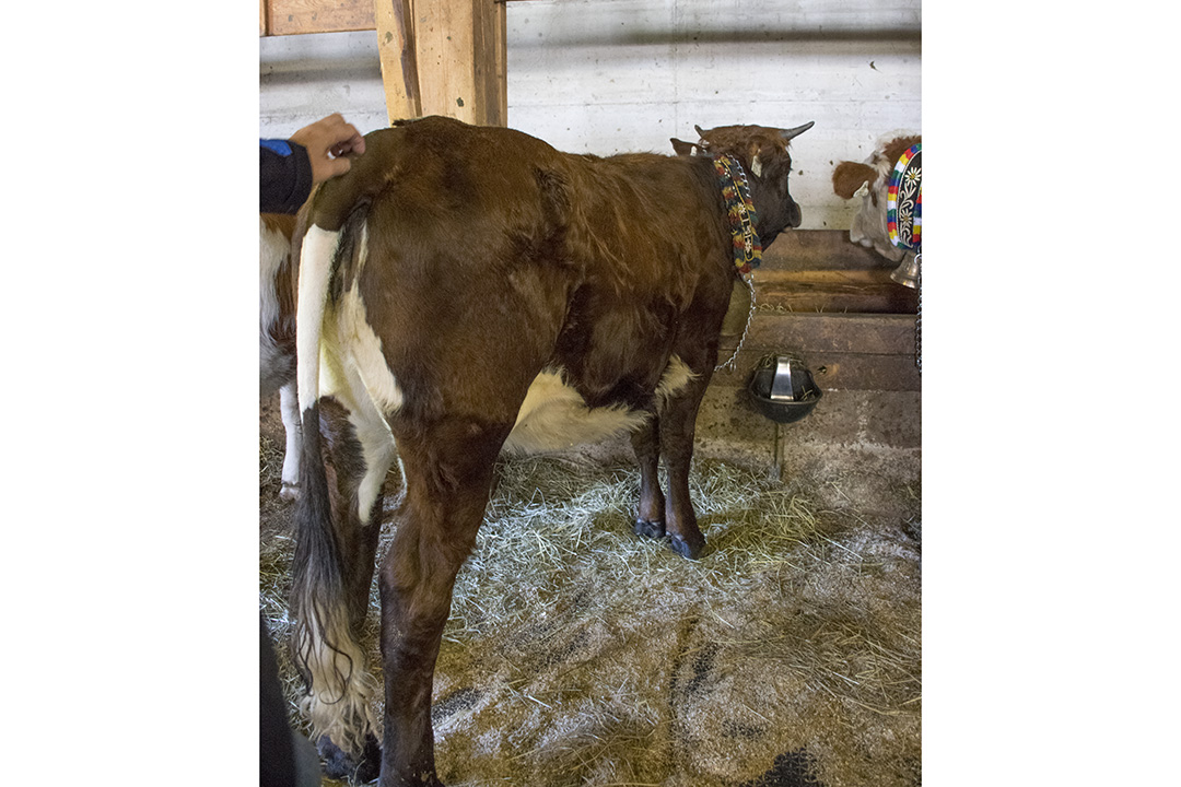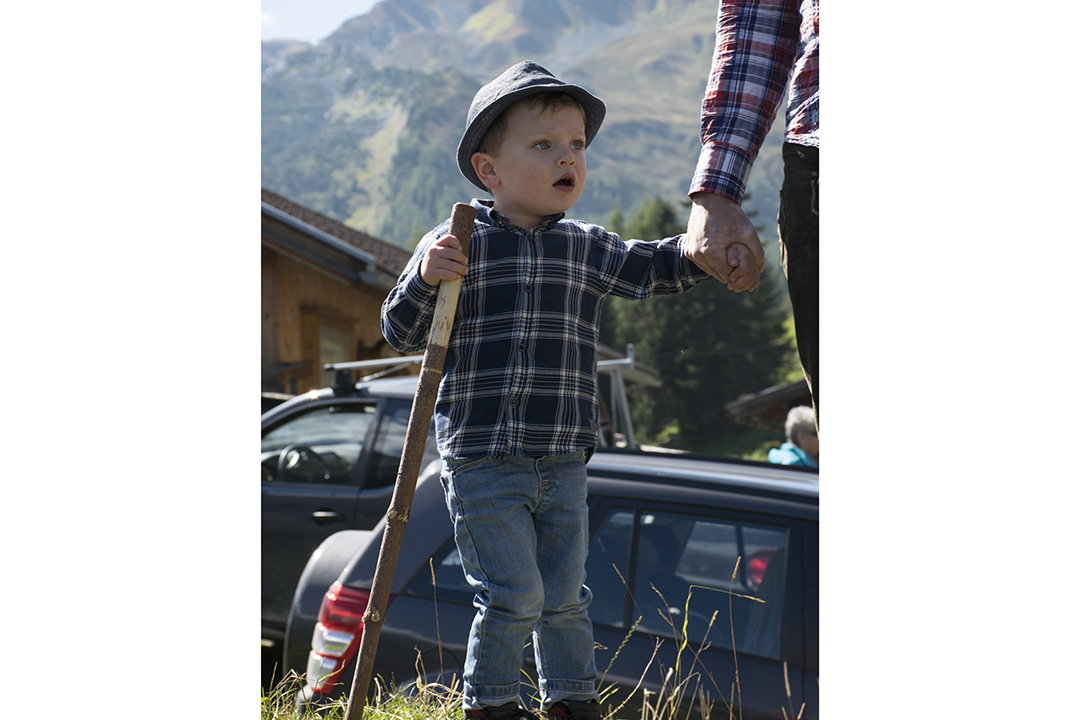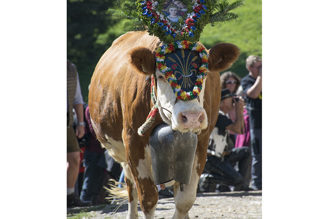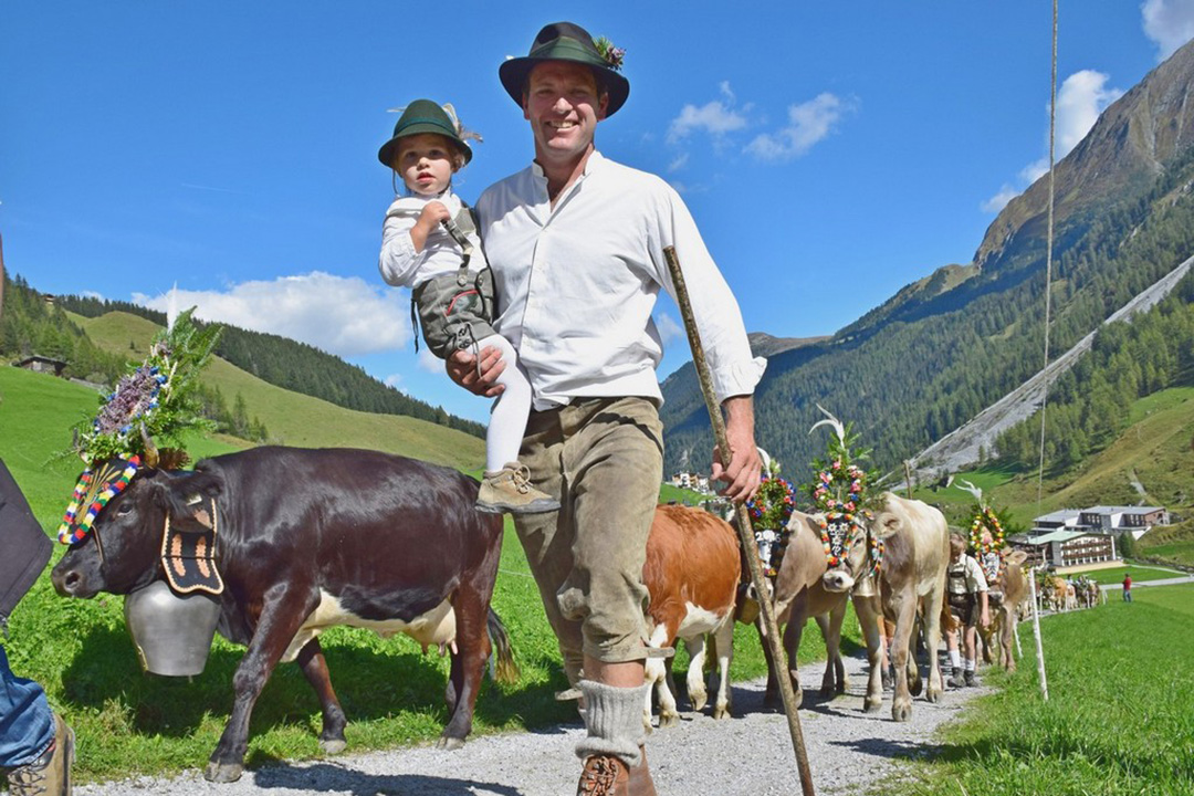 Følget av kyr og bønder er ferdig pynta. Ei etter ei slepp kyr og kviger ut frå dei tre fjøsa. Bøndene går midt i flokken, gjennom skogen, på gardsvegane gjennom det grøne landskapet og gjennom gatene, forbi dei mange turisthotella og tradisjonelle bygningane i landbyen Hintertux.