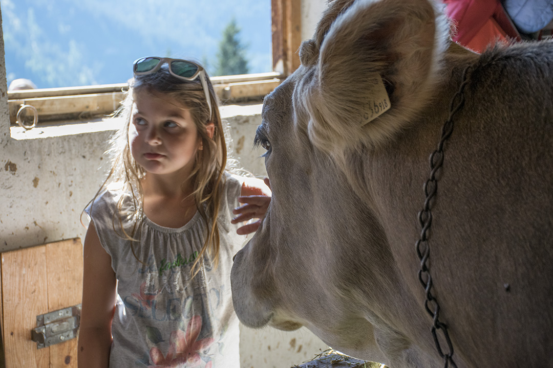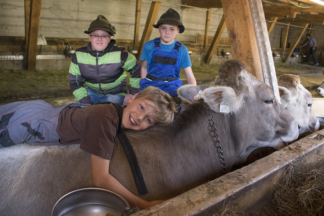 Familien Mader har 18 kyr og 15 kviger heime på garden vinterstid. Om sommaren mjølker dei 28 kyr og har 20 kviger på fjellbeite. Kyrne er av rasen Brown Swiss (Braunvieh) og Simmental (Fleckvieh).