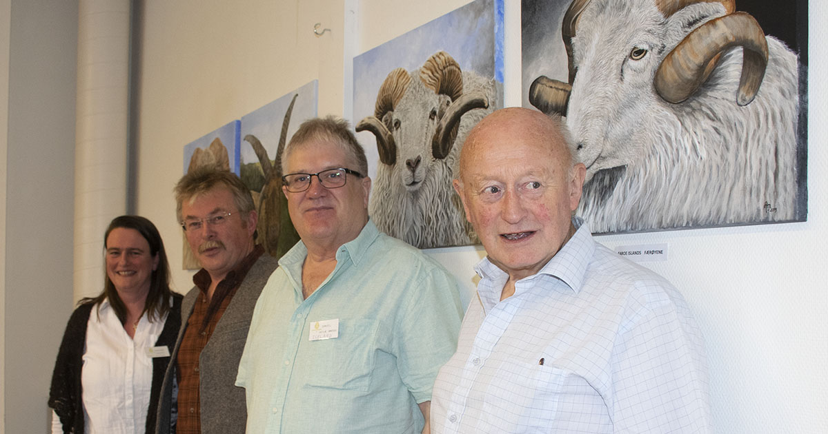 Finn inspirasjon hjå kvarandre: Frå venstre, Dorthea Joensen, landbruksdep. på Færøyane, Ronnie Eunson, bonde på Shetland, Daniel Hansen, leiar av det islanske leiarsau-senteret og Sinclair Scott, sauebonde frå North Ronaldsay.