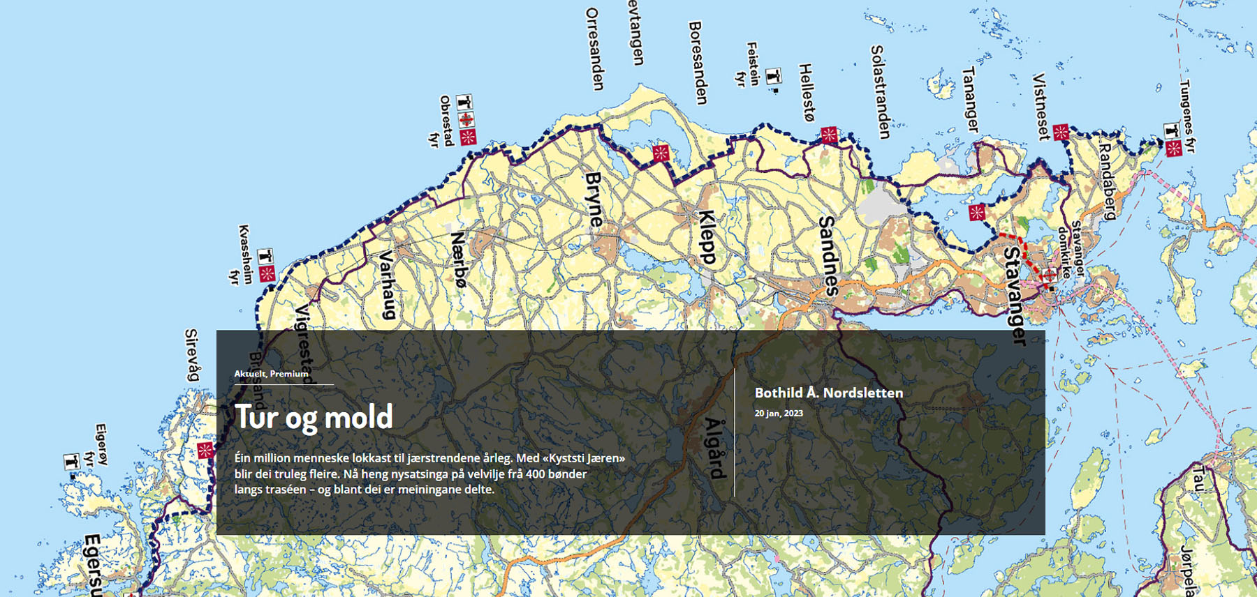 Slik oppsummerer Jon Tore Refve stemninga blant bøndene langs den stipla linja på kartet. Refve driv gard ikkje langt frå den planlagde traséen, er leiar i Bore Bondelag i Klepp, og, som styremedlem i Rogaland Bondelag, fylkeslaget sin representant inn i ei samarbeidsgruppe som er sett ned for arbeidet med kyststien.