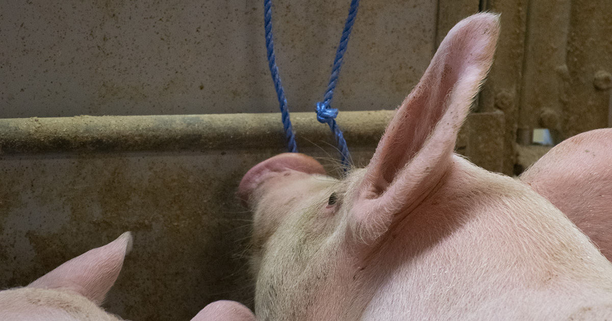 Betre haldningar: Både Norsvin og Nortura tar grep for å styrka haldningane til bøndene. NRK Brennpunkt-dokumentaren viste lovbrot i fleire fjøs. Grisane i denne bingen har fått eit tau til å leike med, eit førebyggande tiltak mot halebiting. Illustrasjonsfoto: Liv Kristin Sola