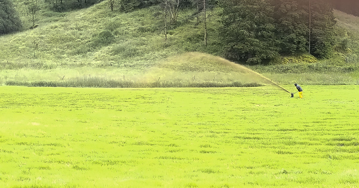 Berre å krumme ryggen: Det tærer på motivasjonen når husdyrgjødsla må spreiast for hand. Illustrasjonsbilete frå Osterøy.