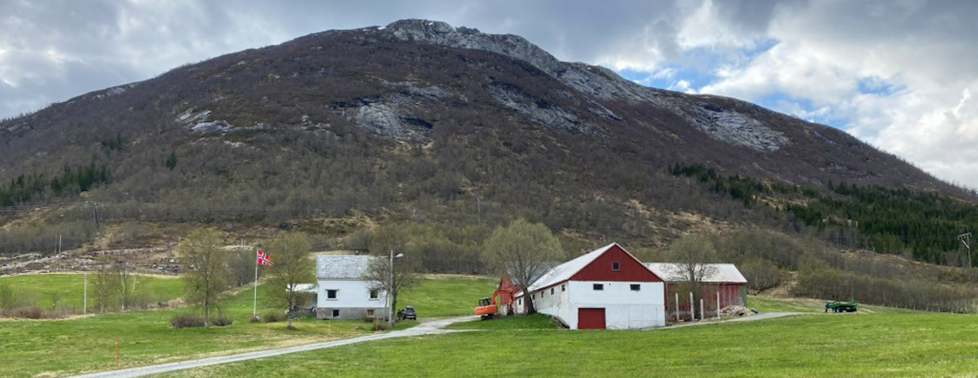 Dalheim gard: Her i Dvergsdalsdalen, 500 meter over havet, var det bestefar til Anna Cecilie bureiste på 1930-talet og livnærte seg av ein geiteflokk. Foreldra hennar bygde kufjøset i 1970-talet bygde foreldra hennar kufjøset. No tek Anna Cecilie og Roger arven vidare. Foto: Privat.