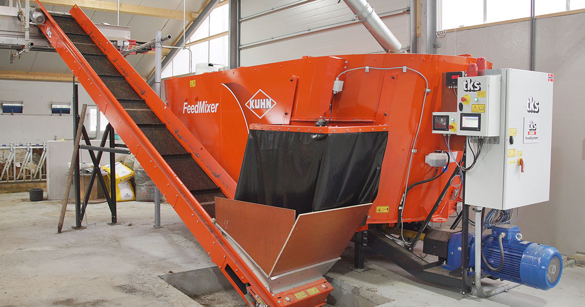 Miks: TKS FeedMixer med transportør, som mater opp grovfôret på FeedBelt. Foto: TKS