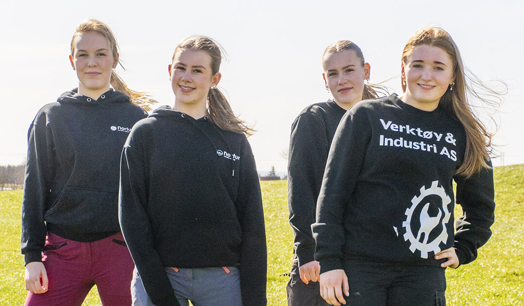 Tiandeklassingane Mari, Vilde, Ida Amalie og Juneer avløysarar på kvart sitt mjølkebruk på Jæren. – Ein fin jobb om du har interesse for dyr, seier June.