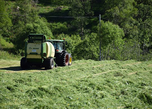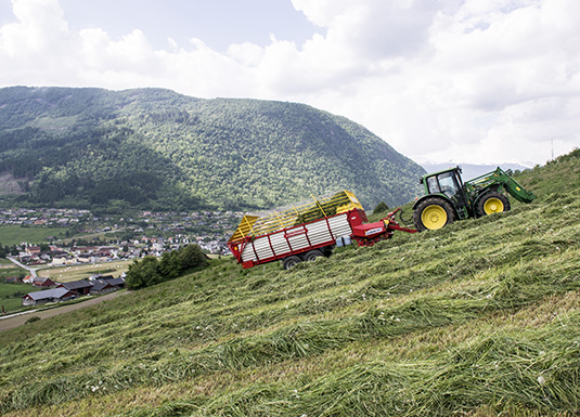 Varierande jordtyper på garden, med ein stor del myrjord, gjer at Svein Jarle Njåstad på Osterøy, nyttar tvillinghjul og singelpresse under slåtten.