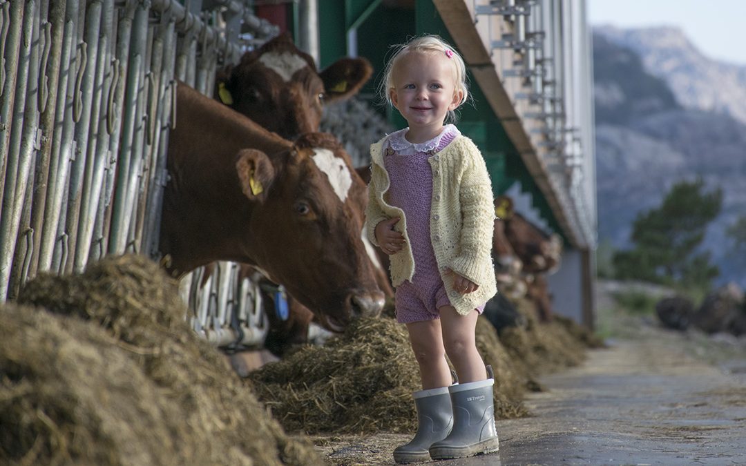 Arnhild Erevik og Egil Byberg frå Forsand har bygd lausdriftsfjøs med mange smarte løysingar, blant anna eit utvendig fôrbrett som blir vippa opp etter at fôret er lagt ut.