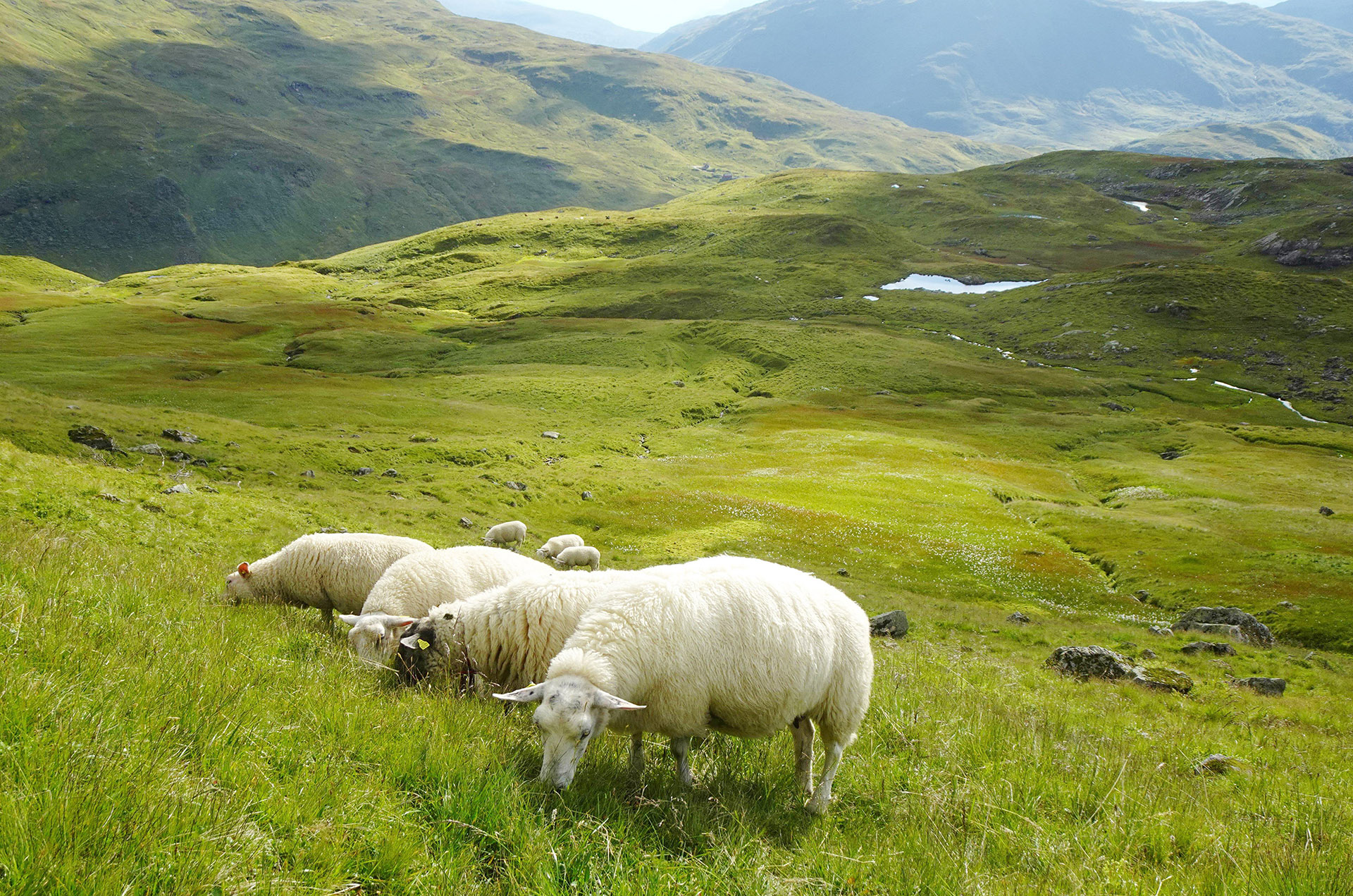 Matfatet: Sau i grasrik skredmark i Kvanndalen. Foto: Yngve Rekdal