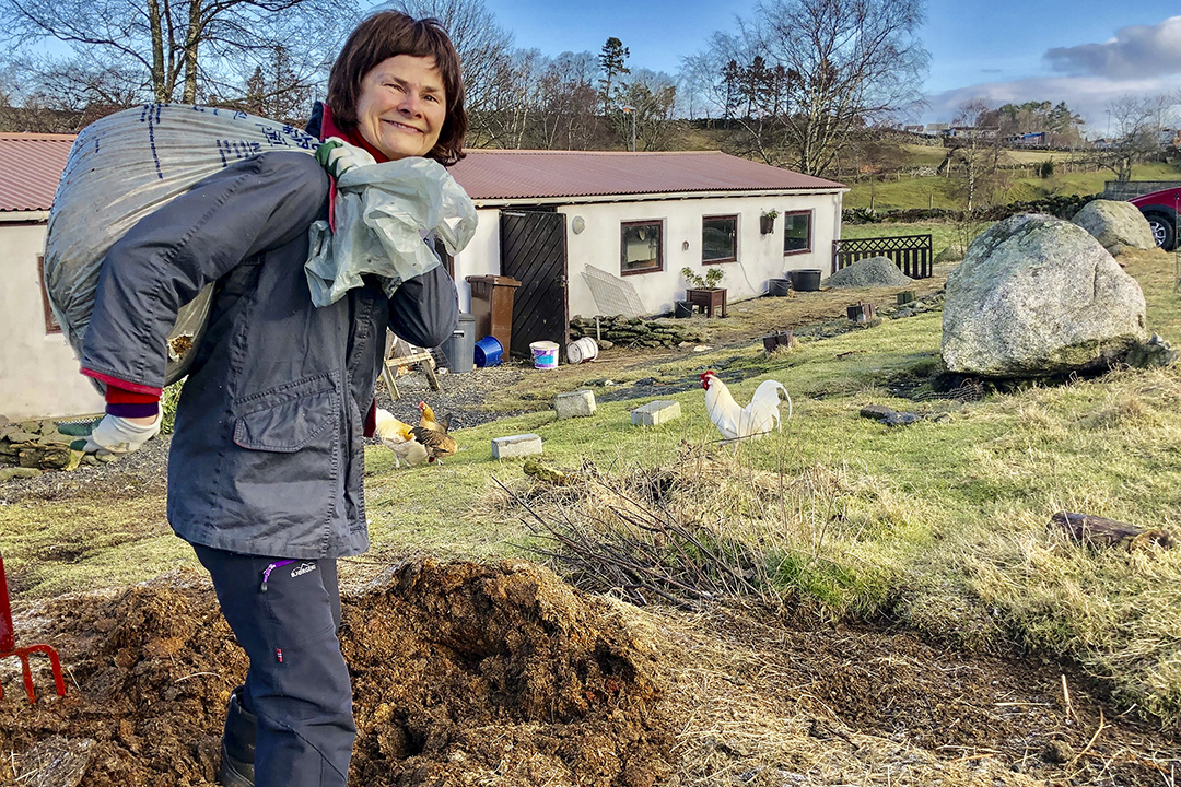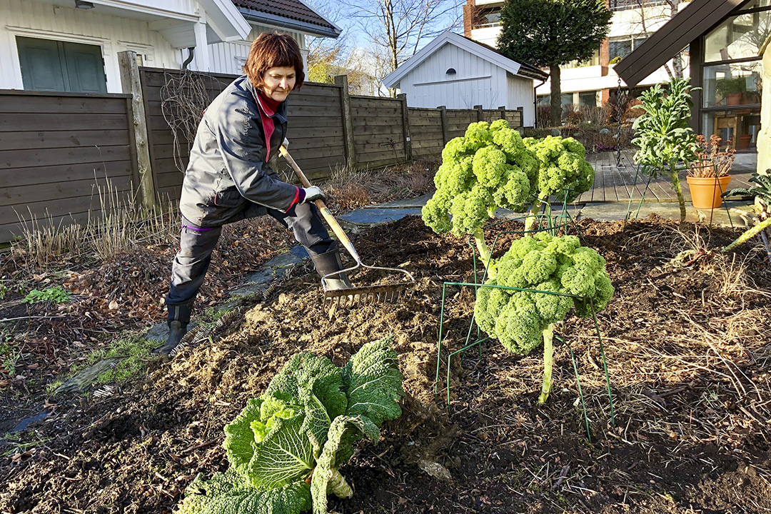 «At det går an å bli så glad av møkk», sa mannen min. Eg gliste frå øyre til øyre mens eg fordelte gammal hestemøkk på toppen av beda i Leikeplasshagen.