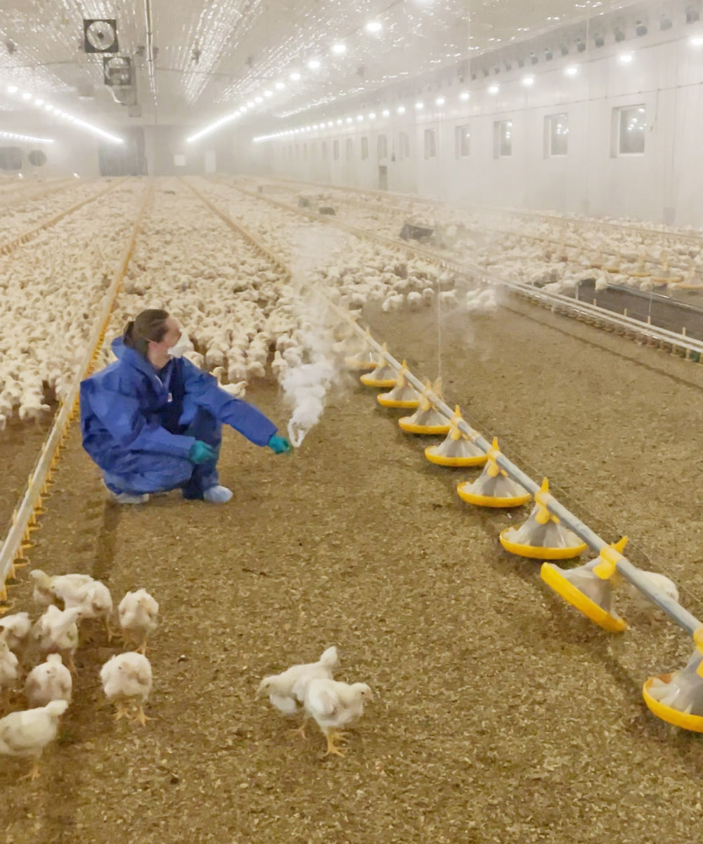 Røyktesting i hus med kyllinger