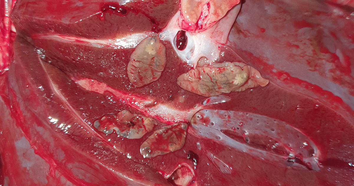 Stor skade: Figur 1 Den store leverikten i lever hjå hjortekolle skote 11.11.2020 i område kor eine produsenten i prosjektet held til.