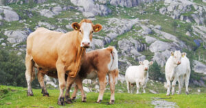 Ennå i det fri: Ammekyr med kalv på beite sensommer.