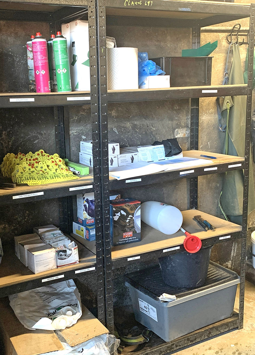 På plass: En reol med markering av hvor tingene skal stå. Dette gir orden og overblikk.