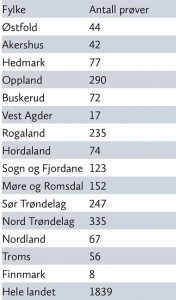 Tabell 1: Fylkesvis oversikt over bestilte GS-analyser.