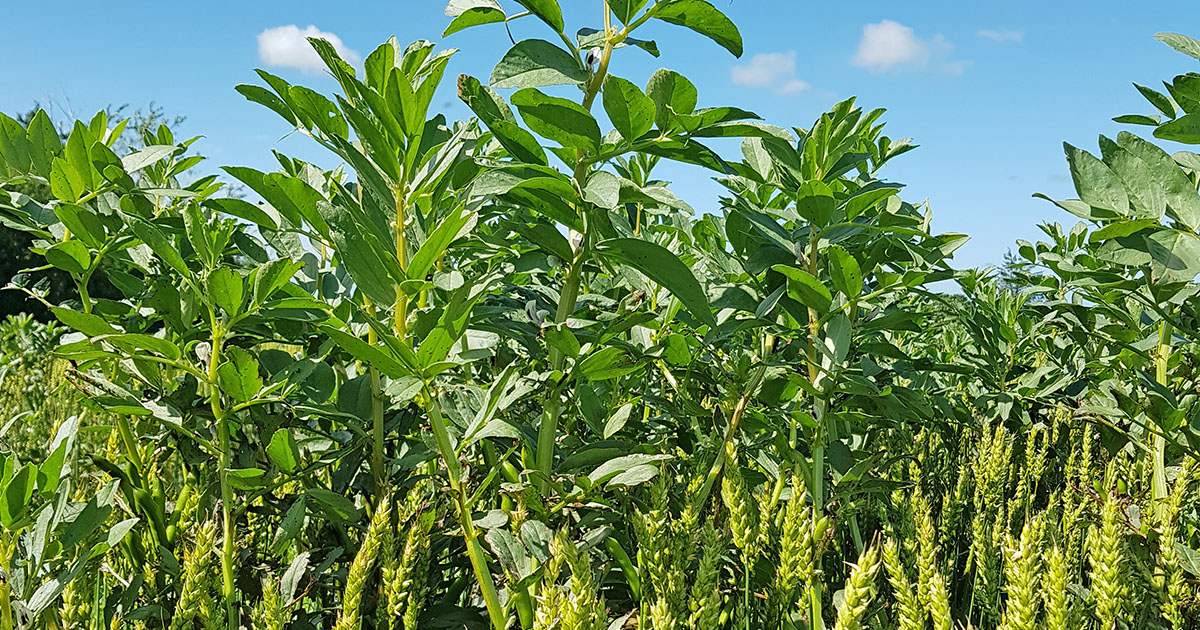 Grøderikt: Åkerbønner og hvete ved tidlig deigmodning, 4. august 2020. Foto: Therese Mæland