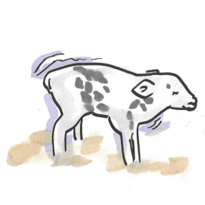 Liten og pjusk: Kalvens kroppsspråk signaliserer tydelig at den har det dårlig. Illustrasjon: Claus Bekker Jensen