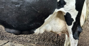 Stormelker: Her ser vi tydelig hvordan melkeåren har vokst ut på denne eldre kua, som har produsert 150 tonn melk.